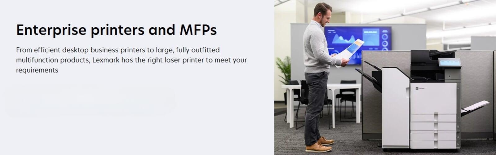 They’re dependable, reliable and last for years. Advanced features allow you to print on most media and save you the headache of misfeeds and paper jams. Plus, they are one of the most sustainable choices you can make for office equipment. Lexmark business printers and MFPs are secure and simple to manage. And with the right software and solutions, they are an indispensable part of your business.